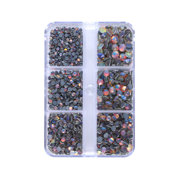 Sold out - Mixed Sizes 6 Grid Box Black Diamond AB Glass FlatBack Rhinestones For Nail Art Silver Back+sp.priceRaw ? 'price price--on-sale' : 'price'">