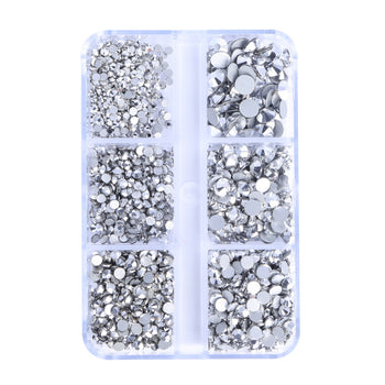 Sold out - Mixed Sizes 6 Grid Box Silver Glass FlatBack Rhinestones For Nail Art Silver Back+sp.priceRaw ? 'price price--on-sale' : 'price'">