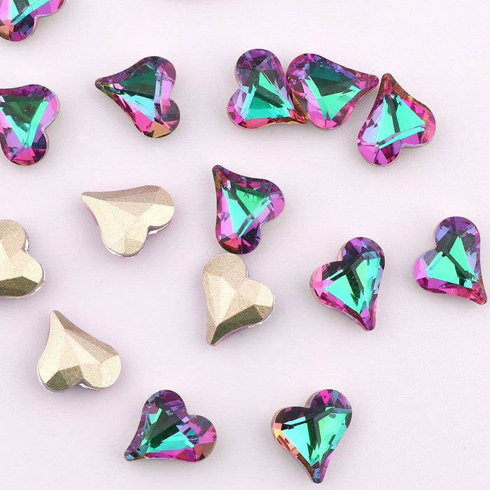 Sweet Heart Shape Green Volcano Glass Pointed Back Fancy Rhinestones