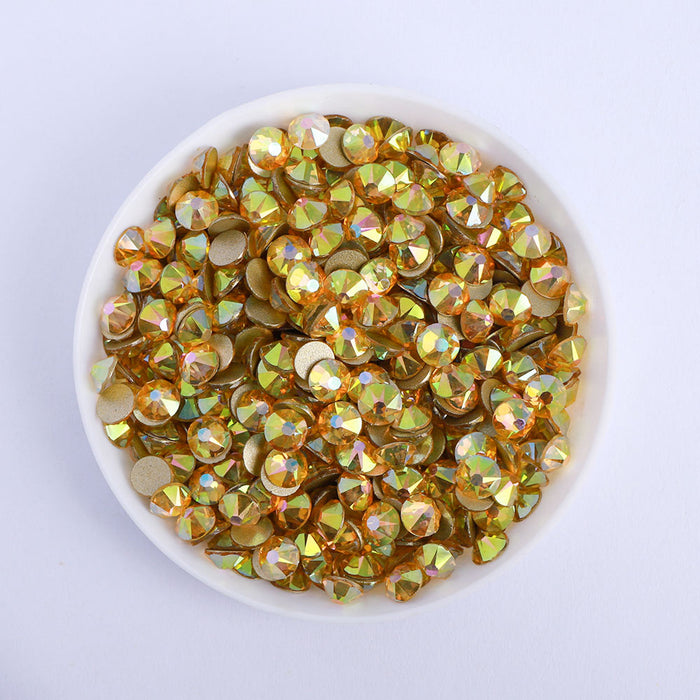 Metal Sunlight Glass Flat Back Glue-On Rhinestones 16 Cut Facets In Bulk