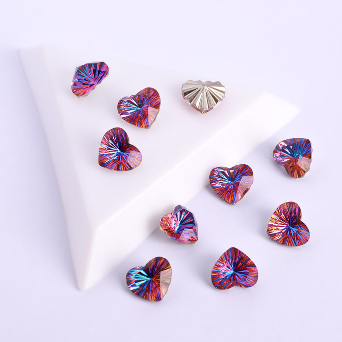 Millennium Series Heart Shape Purple Volcano Glass Pointed Back Fancy Rhinestones