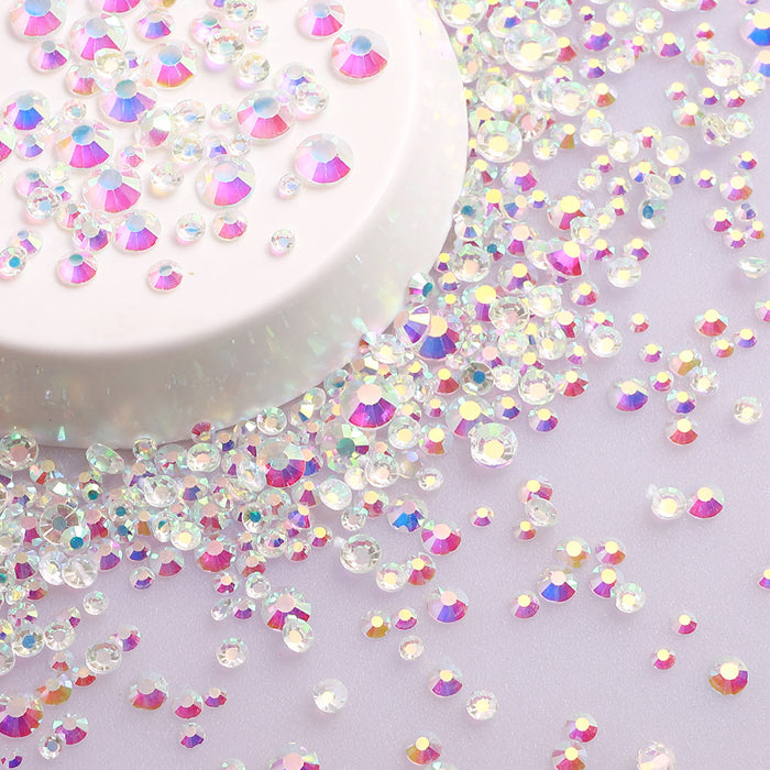 Mixed Sizes Crystal AB Glass FlatBack Rhinestones For Nail Art Unfoiled Back
