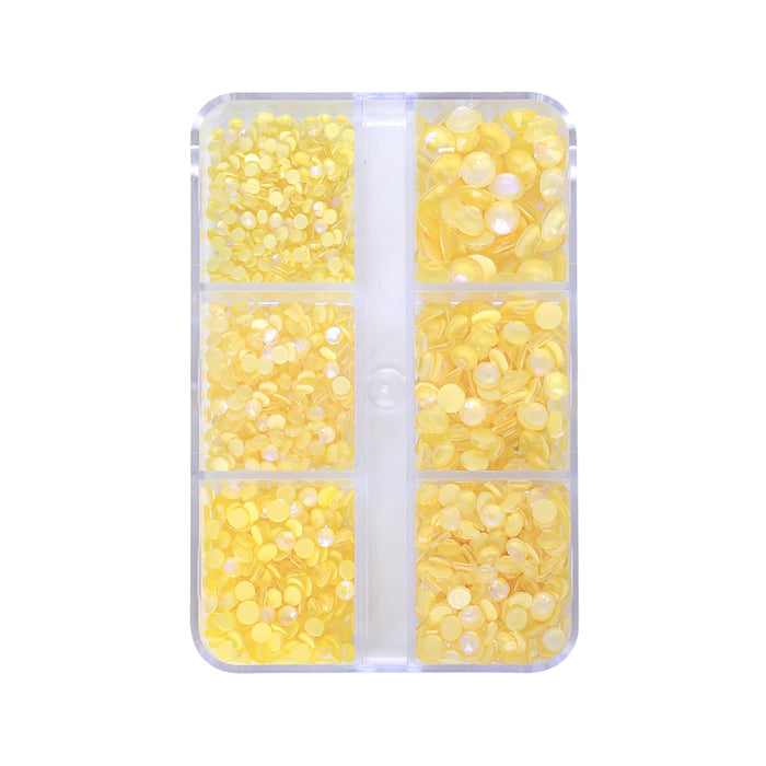 Mixed Sizes 6 Grid Box Mocha SS Yellow Glass FlatBack Rhinestones For Nail Art
