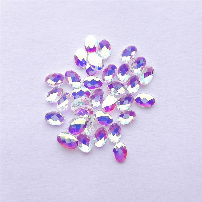 Oval Shape Crystal AB Unfoiled Flat Back Fancy Rhinestones