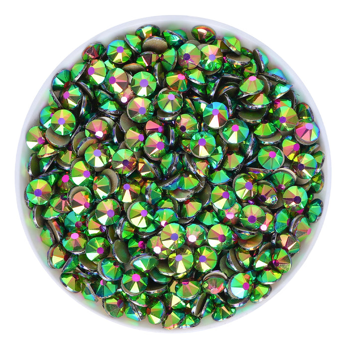 Peacock Green Glass Flat Back Glue-On Rhinestones 16 Cut Facets
