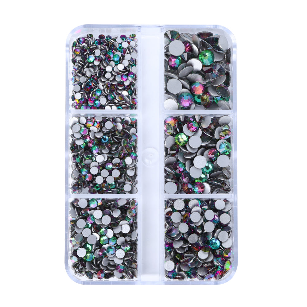 Blandede størrelser 6 gitterboks Glas fladbag rhinsten